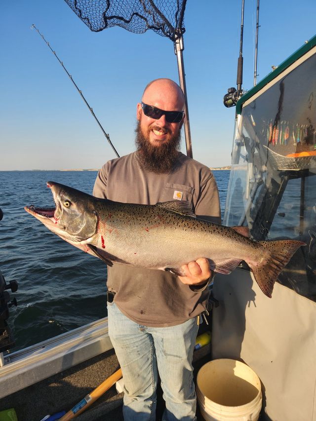 Welcome to Big Lake Guide Service on beautiful Lake Sakakawea. I’m Aaron Hayden, your guide for unforgettable days on the water. I specialize in walleye and salmon fishing trips, and I’m also equipped to target Lake Sakakawea’s abundant smallmouth bass, northern pike, and catfish.